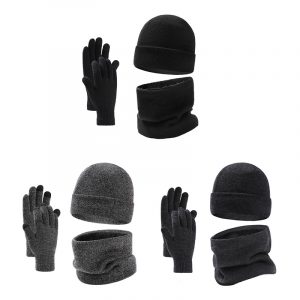 Cross-border Amazon Hat Gloves Scarf Three-piece Knitted Plus Velvet Headgear Hat Scarf Set.